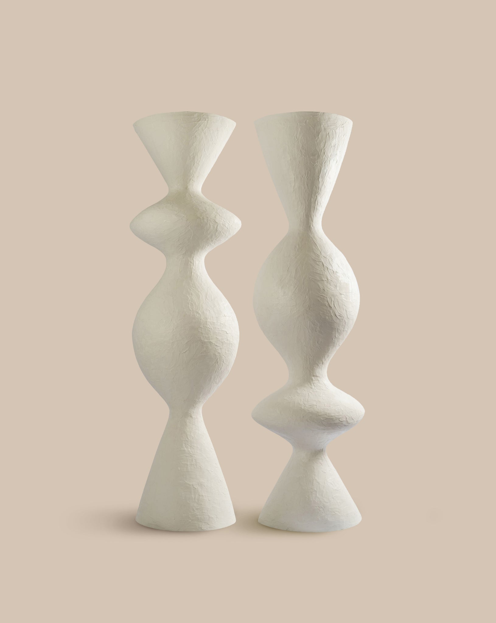 A monumental floor up-lighter lamp modelled after the harmonious curves of the female form. Sold individually. Available in UK, EU, and US compliant formats. In picture 3, Venus II is pictured on the left.